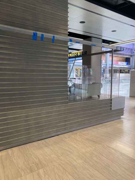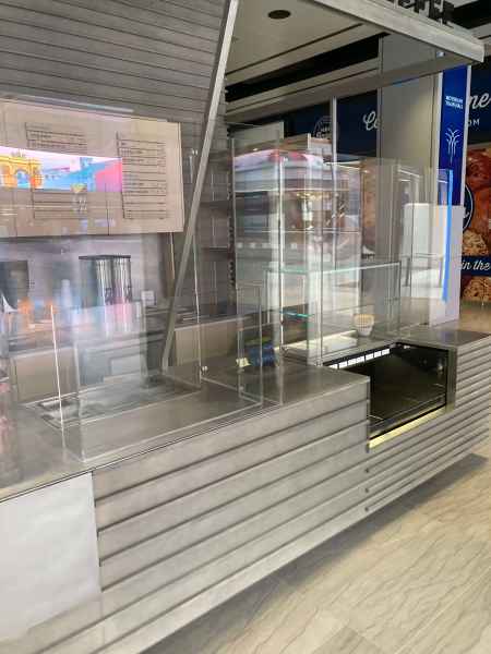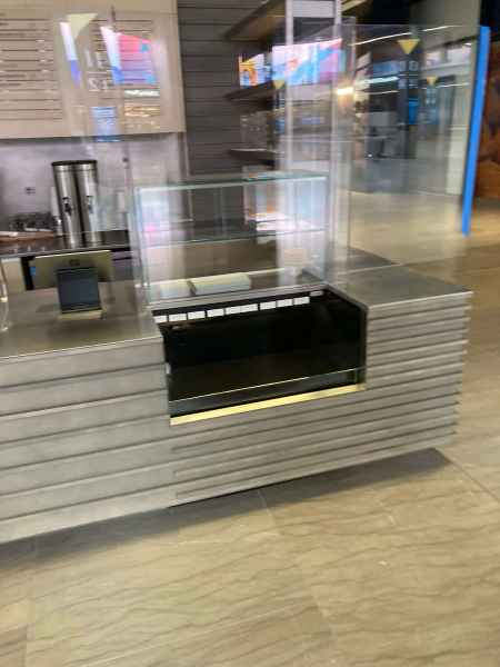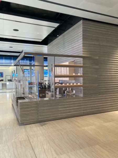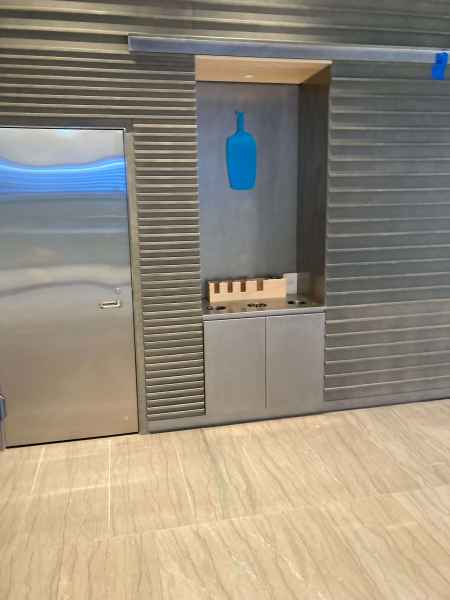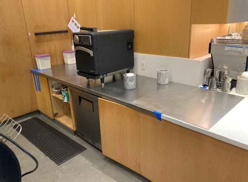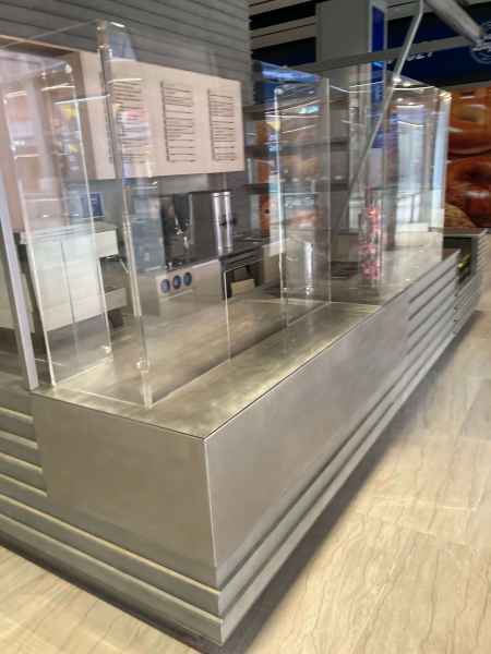 - Stainless steel and glass fabrications were installed to encompass all accommodations for a custom coffee service line experience.