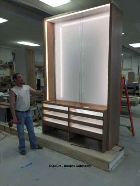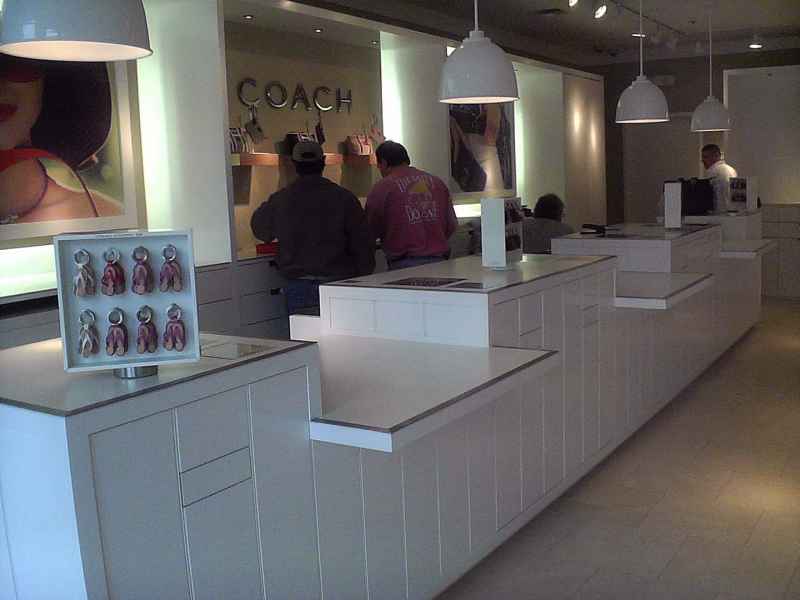 - Sales Floor Millwork for COACH Stores, High gloss white cash wrap, fixtures, displays and vitrines. Fashioned to showcase the COACH luxury brand.