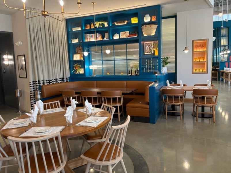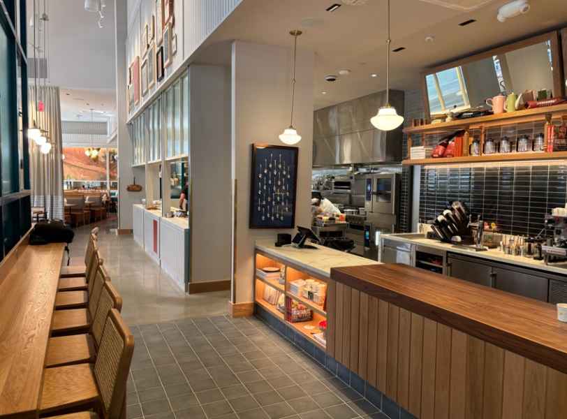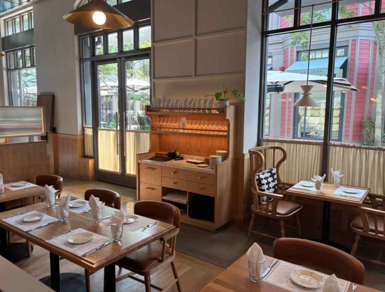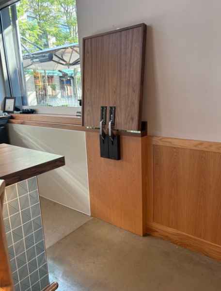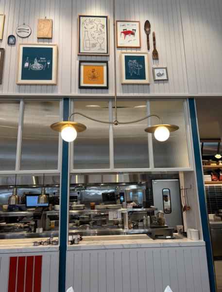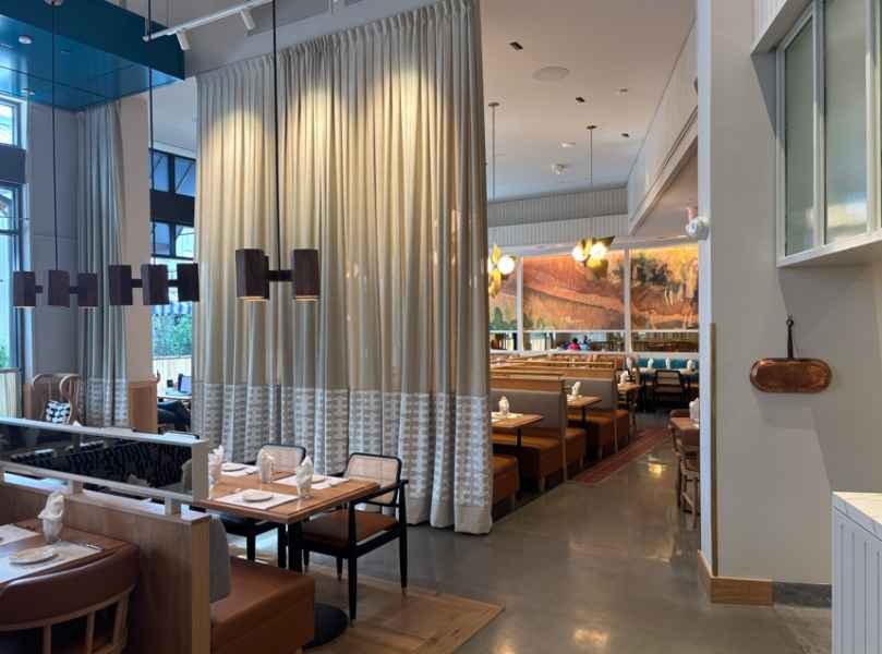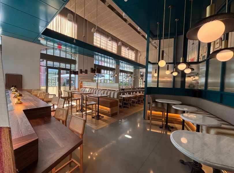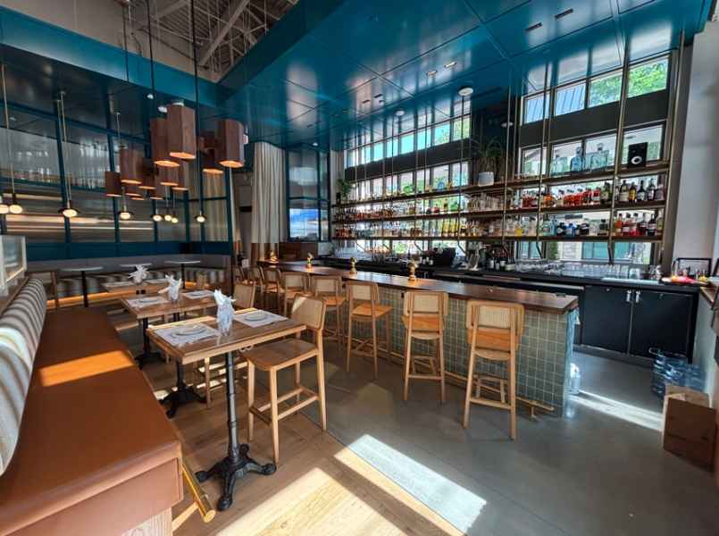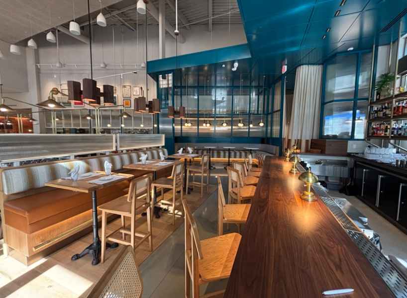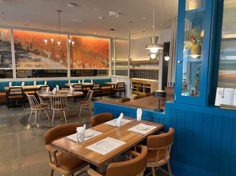 - Walnut Host Stand, Fireplace enclosure, Oak Countertop, White beadboard & Wall Planking, Server Station, Recessed Wall Cabinet, Pacific Blue Beadboard & Booth Walls, Dining Banquette Walls, Bar, Custom wine rack & welding for backbar suspended shelving and trim throughout.
