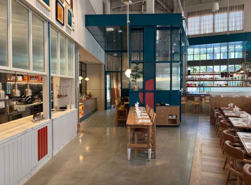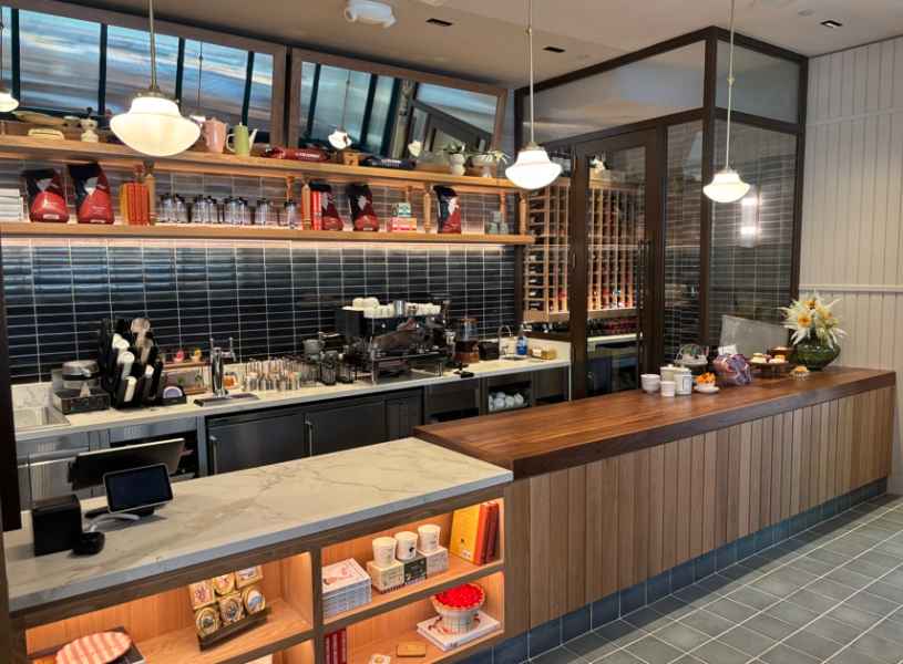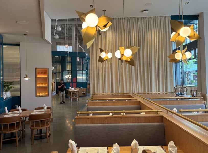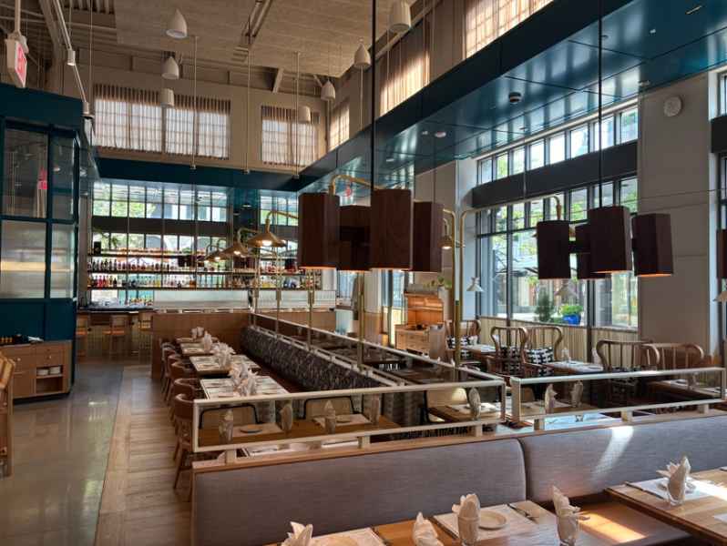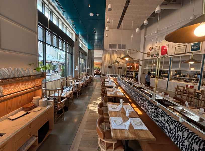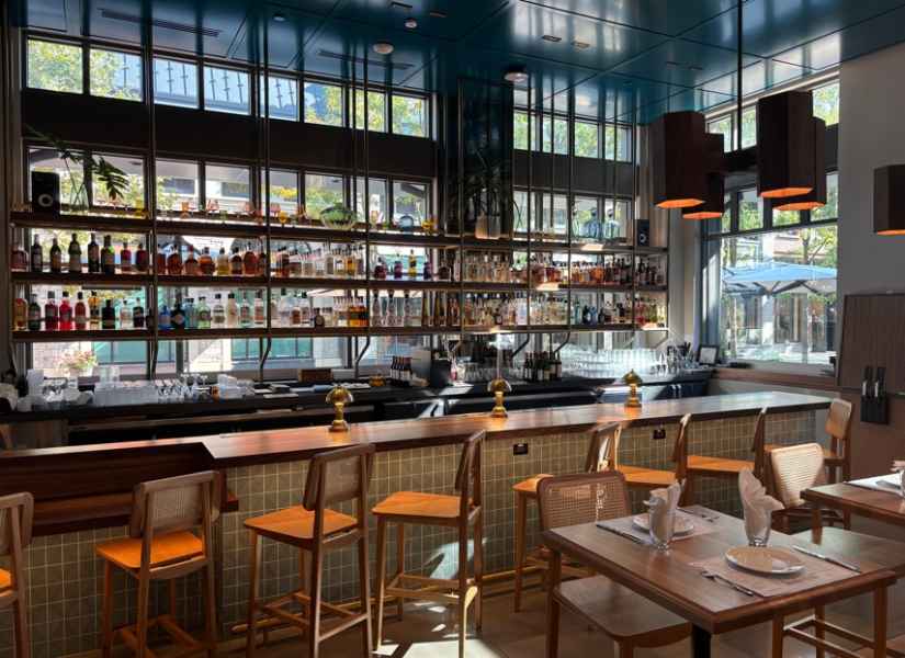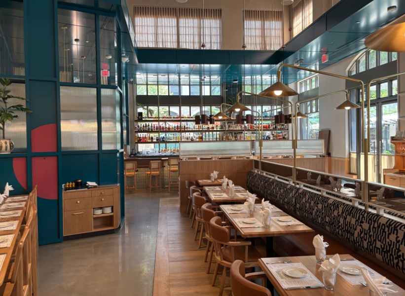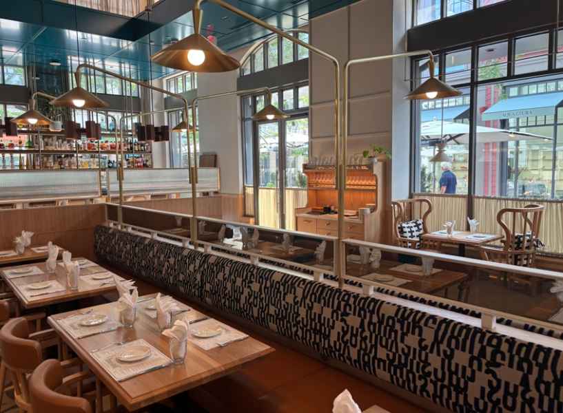 - Walnut Host Stand, Fireplace enclosure, Oak Countertop, White beadboard & Wall Planking, Server Station, Recessed Wall Cabinet, Pacific Blue Beadboard & Booth Walls, Dining Banquette Walls, Bar, Custom wine rack & welding for backbar suspended shelving and trim throughout.