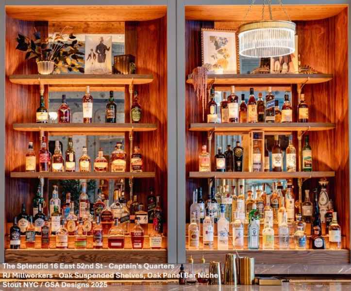 - Hostess Stand, Waiter Stations, Storage Wall Cabinets, Credenza, Back Bar Burl Veneer with Antique Mirrors, Liquor Risers, Trim, Molding, Mezzanine Bar, Waiter Station and running trim